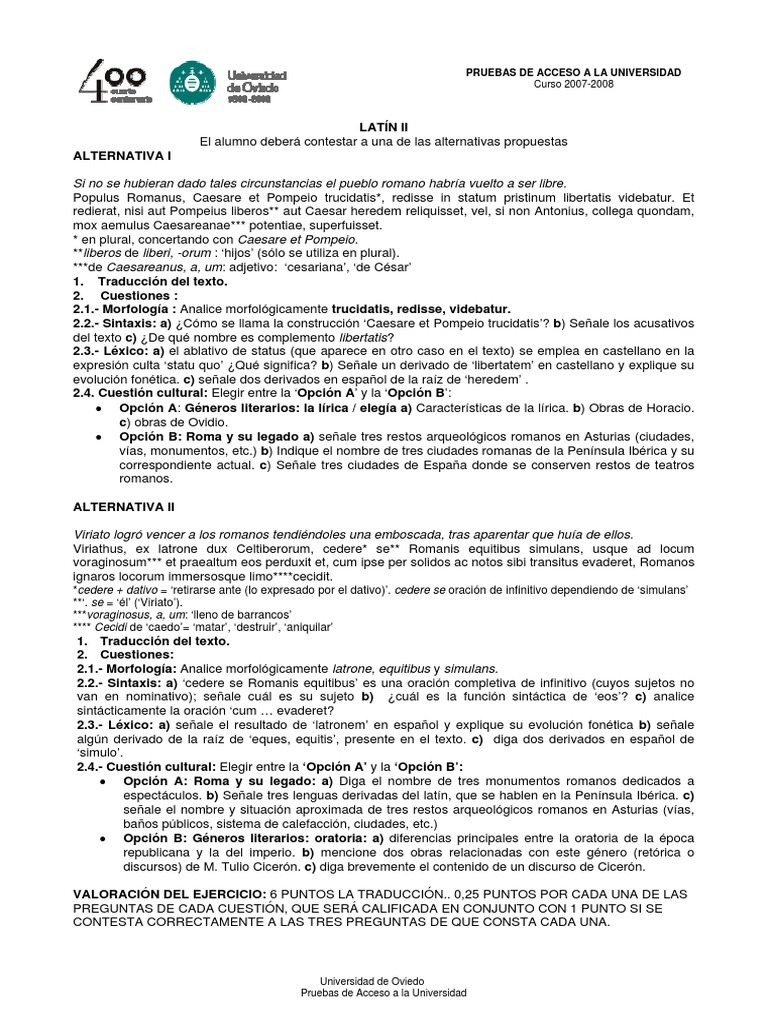VALORACIN DEL EJERCICIO: 6 PUNTOS LA TRADUCCIN.. 0,25 PUNTOS POR CADA UNA DE LAS