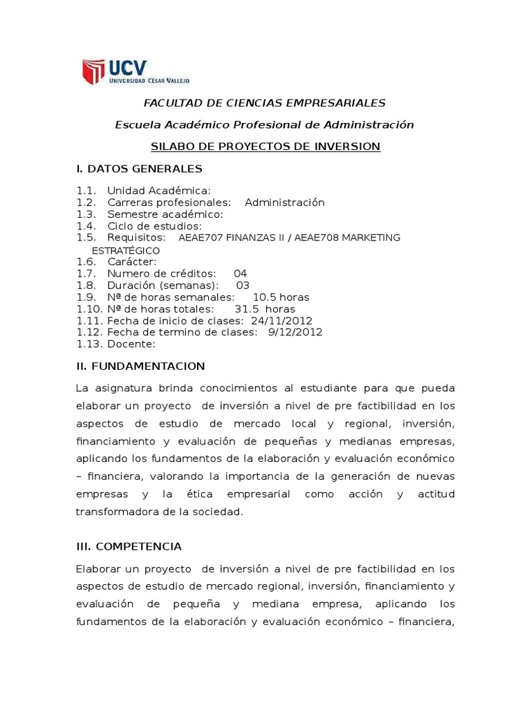 Elaborar un proyecto de inversin a nivel de pre factibilidad en los