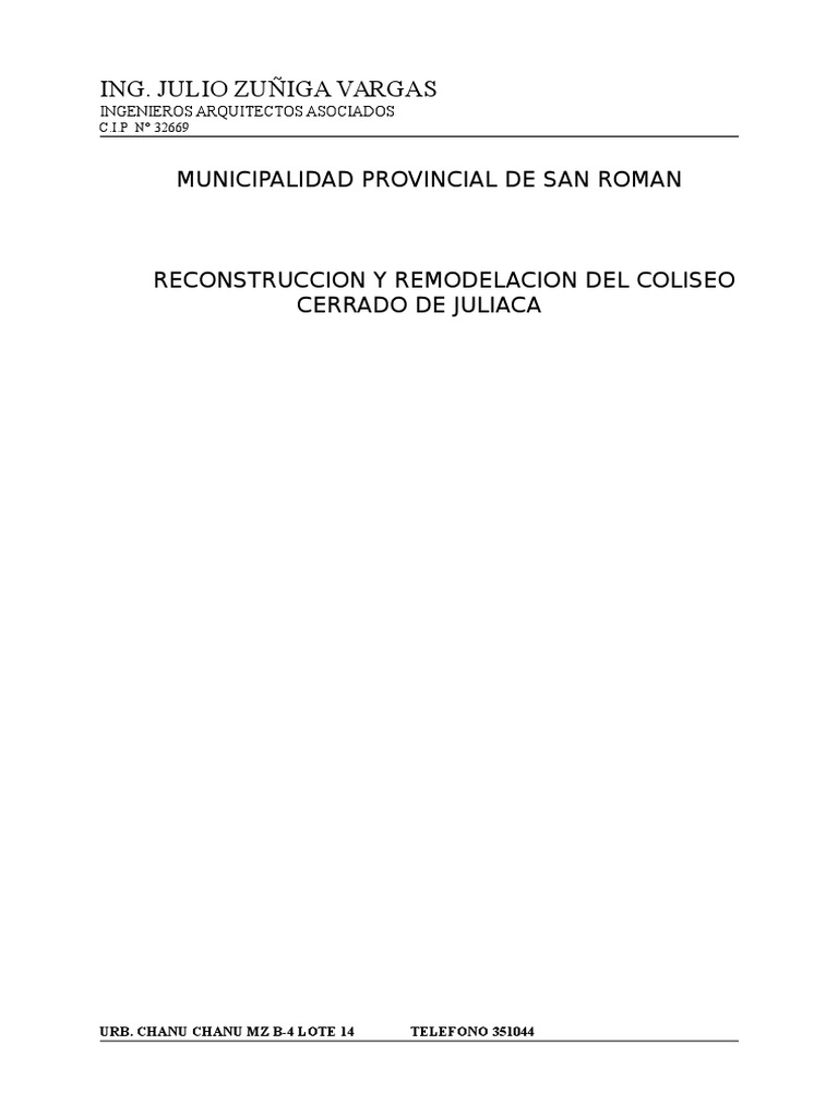 de la reconstruccin y puesta en valor del coliseo cerrado de Juliaca.