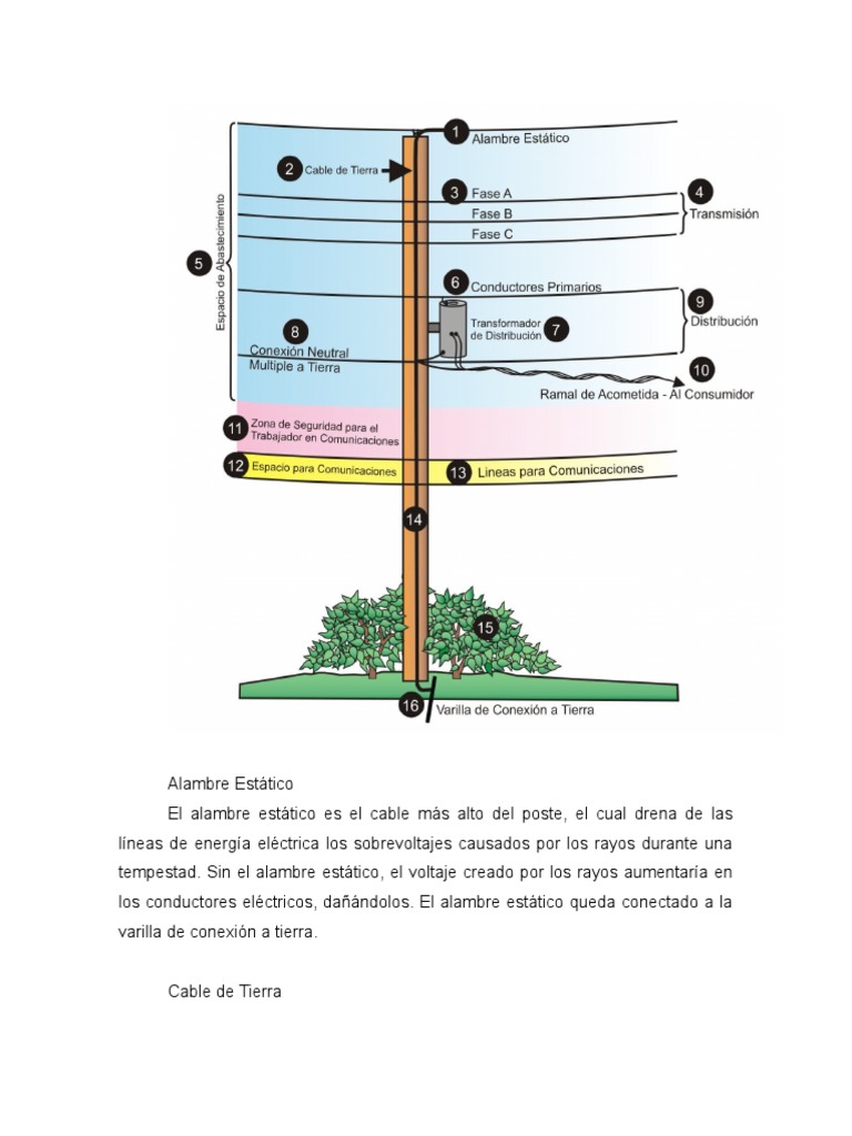 El alambre esttico es el cable ms alto del poste, el cual drena de las