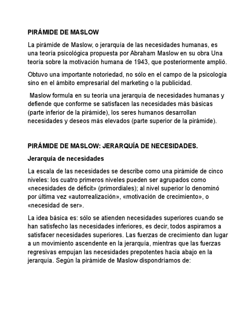 Necesidades Pirámide de Masloww