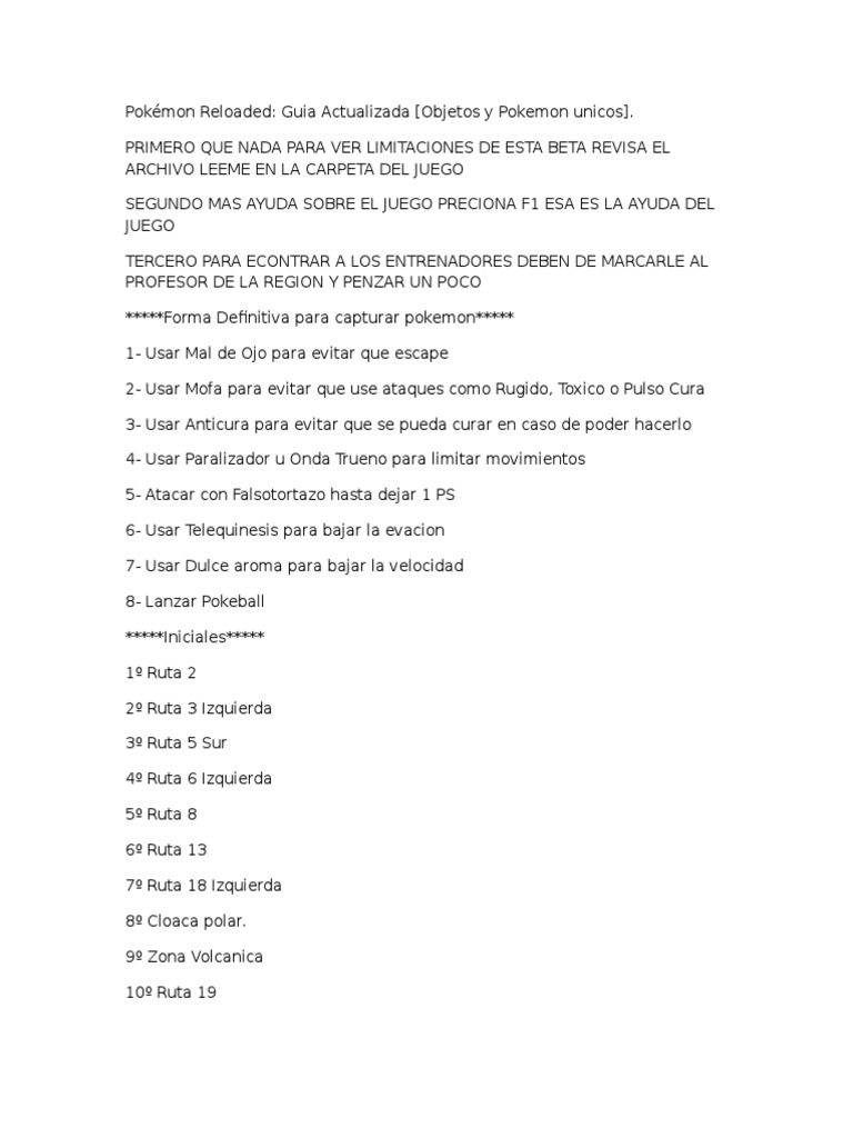 Pokmon Reloaded: Guia Actualizada [Objetos y Pokemon unicos].