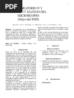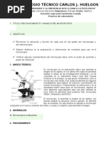 El objetivo principal de la prctica ser reconocer las partes del microscopio ptico as como sus