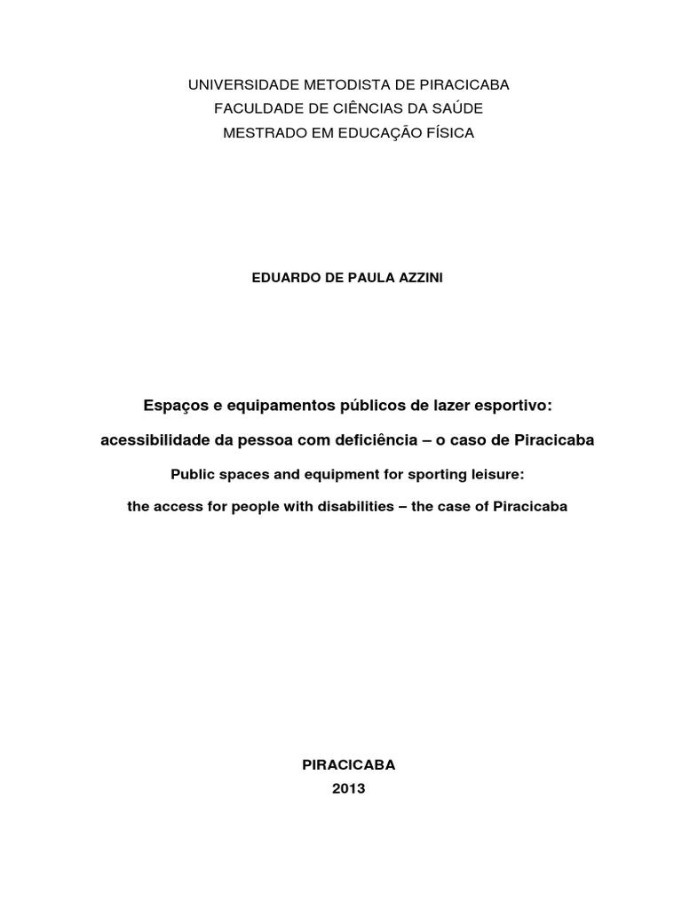 pblicos de lazer da cidade de Piracicaba (SP) promovem o acesso s pessoas