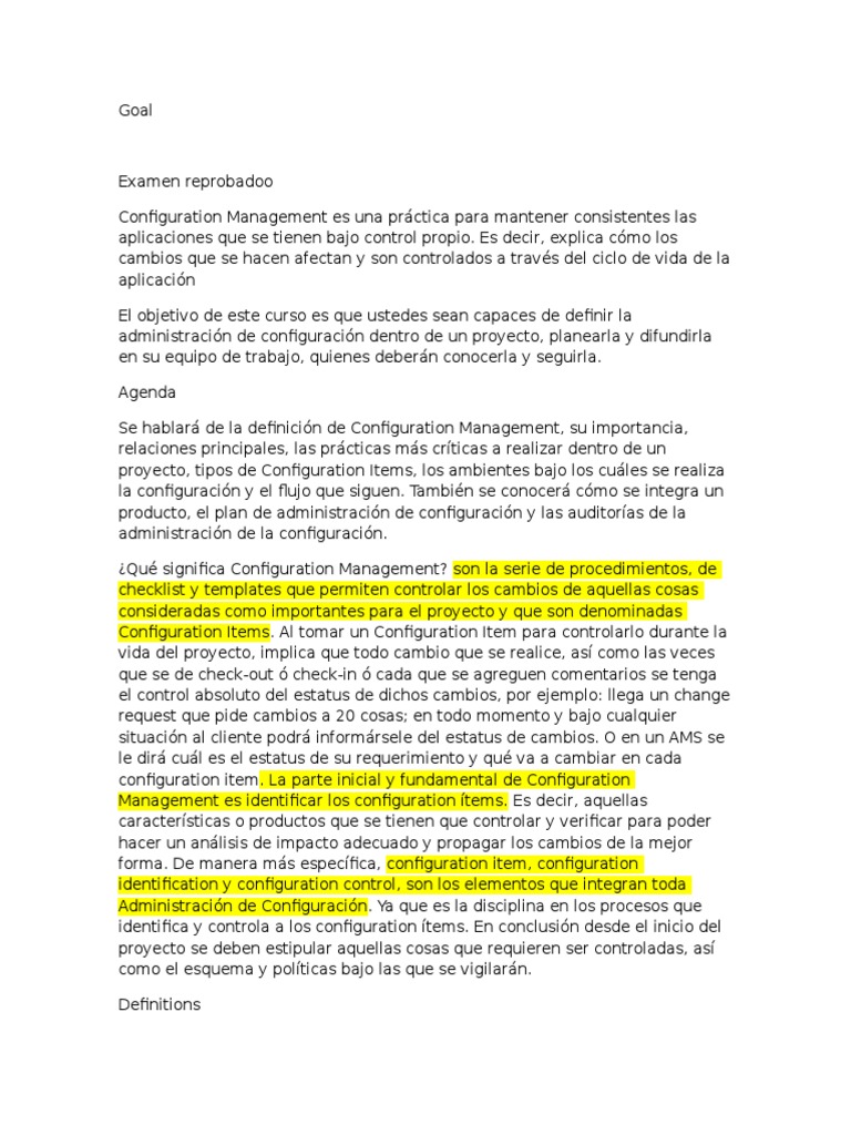 Se hablar de la definicin de Configuration Management, su importancia,