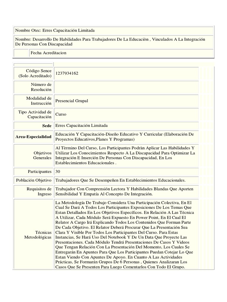 Nombre: Desarrollo De Habilidades Para Trabajadores De La Educacin , Vinculados A La Integracin