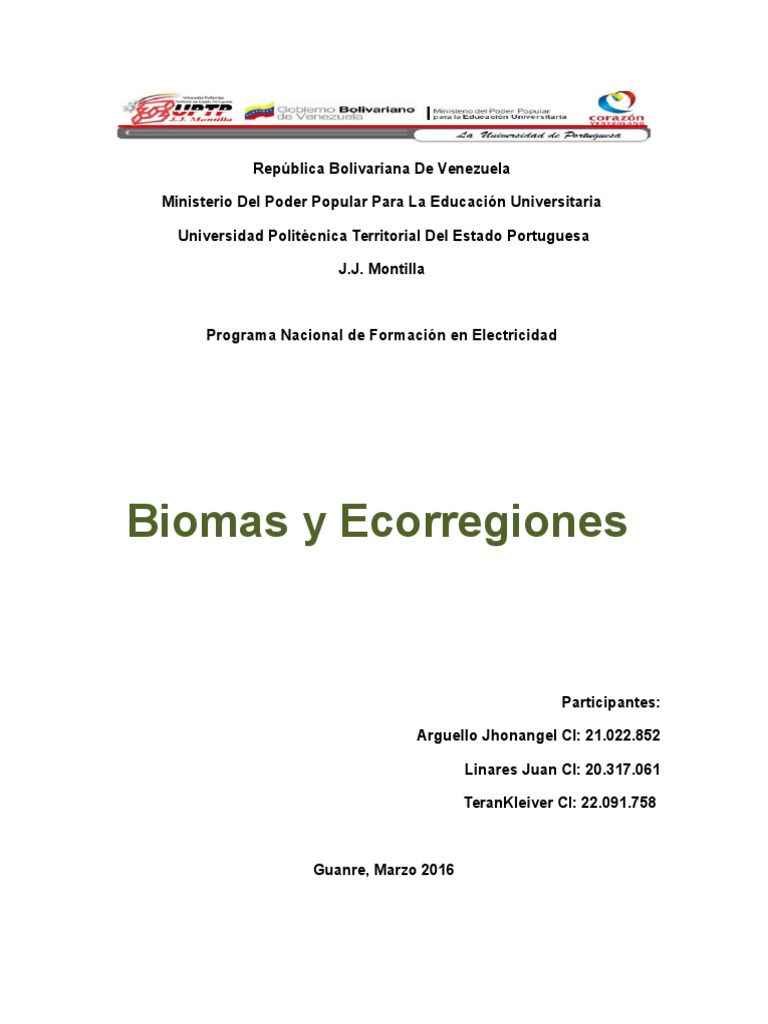 Un bioma es un rea geogrfica, muy grande en tamao. Cada una de estas