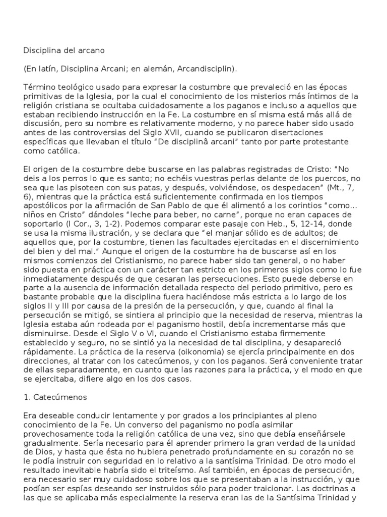 específicas que llevaban el título “De disciplinâ arcani” tanto por parte protestante