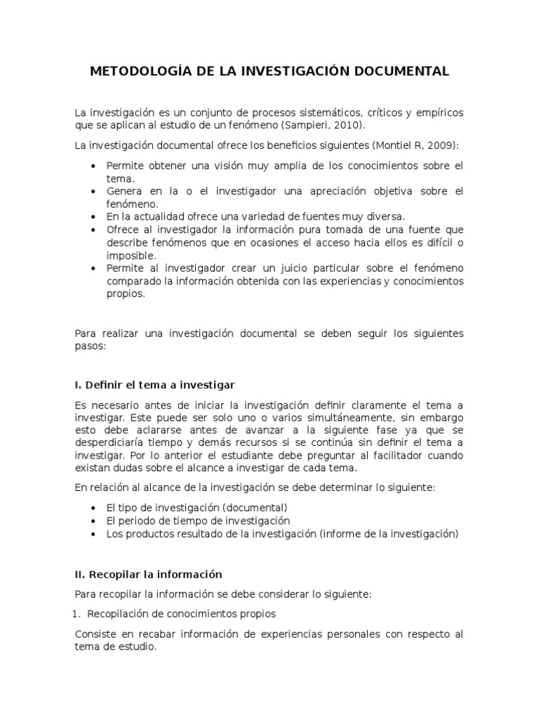 informacin suficiente para realizar un trabajo de investigacin documental.