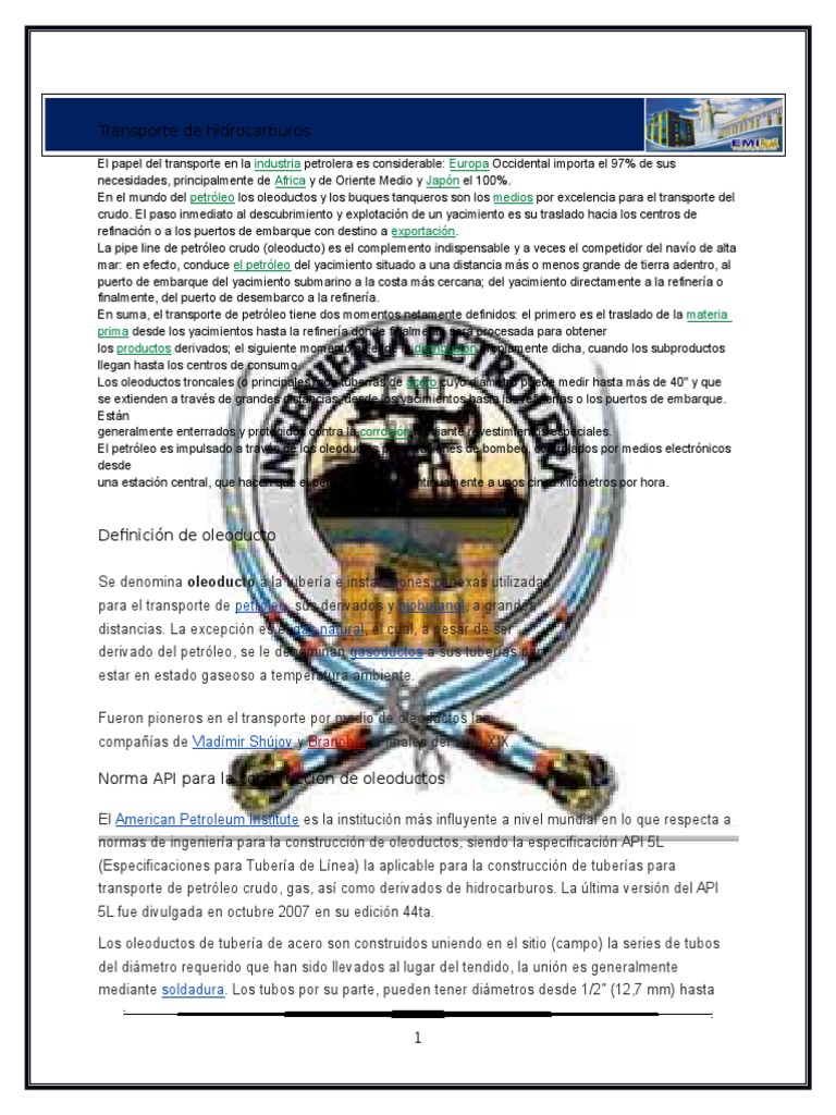 crudo. El paso inmediato al descubrimiento y explotacin de un yacimiento es su traslado hacia los centros de