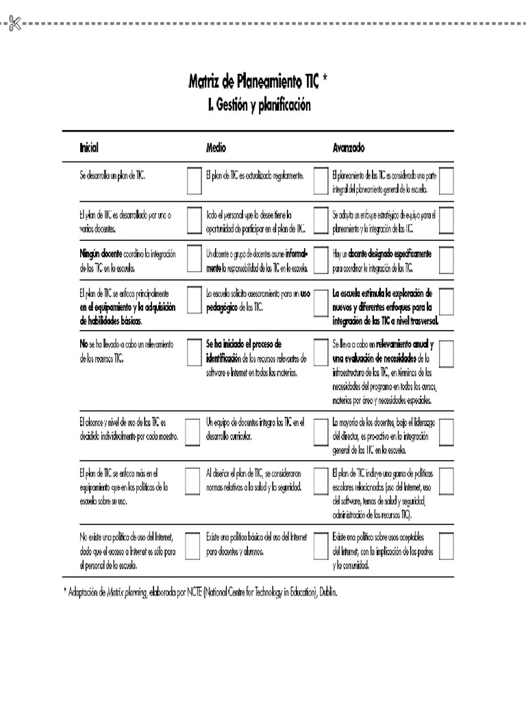 National Centre for Technology in Education (NCTE) y Consorcio INTEGRA (2004): Planeamiento y utiliza cin de las TIC en las escuelas. Dubln, Irlanda.