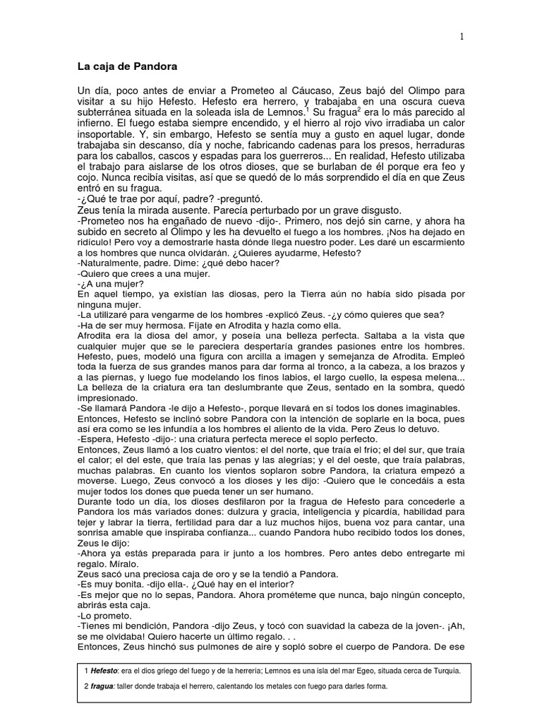 -Se llamar Pandora -le dijo a Hefesto-, porque llevar en s todos los dones imaginables.