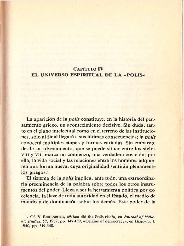1. Cf. V. EHRENBERG, When did the Polis rise?, en Journal of Helenic studies, 57, 1937, pp. 147-159; Origins of democracy, en Historia, 1,