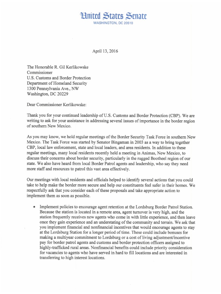 U.S. Senators Tom Udall and Martin Heinrich urged U.S. Customs and Border Protection (CBP) to promptly address border security and safety issues in the Bootheel region of Southern New Mexico…Descripción completa