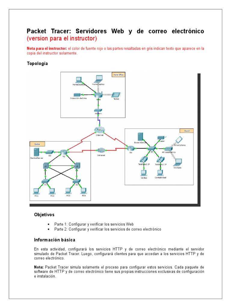 simulado de Packet Tracer. Luego, configurar clientes para que accedan a los servicios HTTP y de