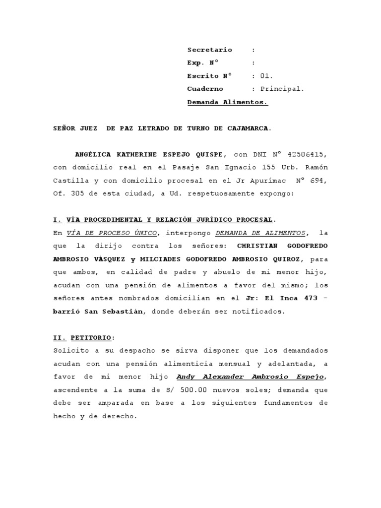 la demanda al padre de mi hijo, l de inmediato argumentara