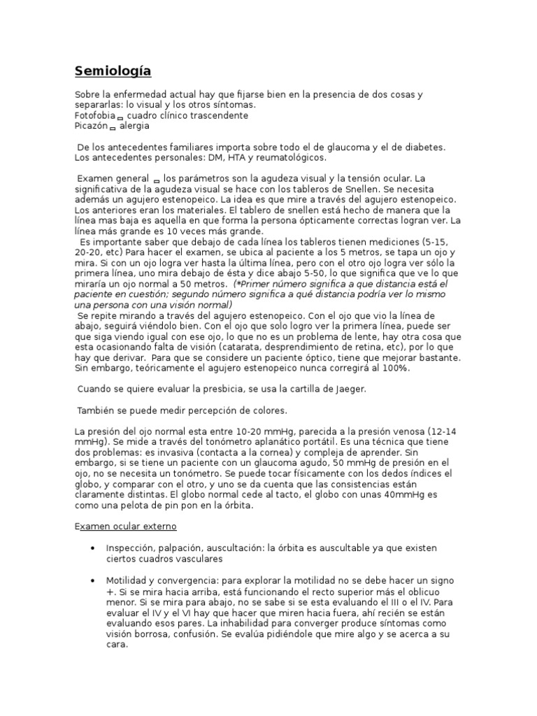 Examen general los parmetros son la agudeza visual y la tensin ocular. La