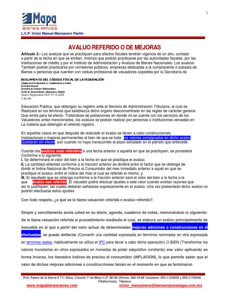 aqu en donde nace la conveniencia de practicar un avalo referido de las mejoras a fin de