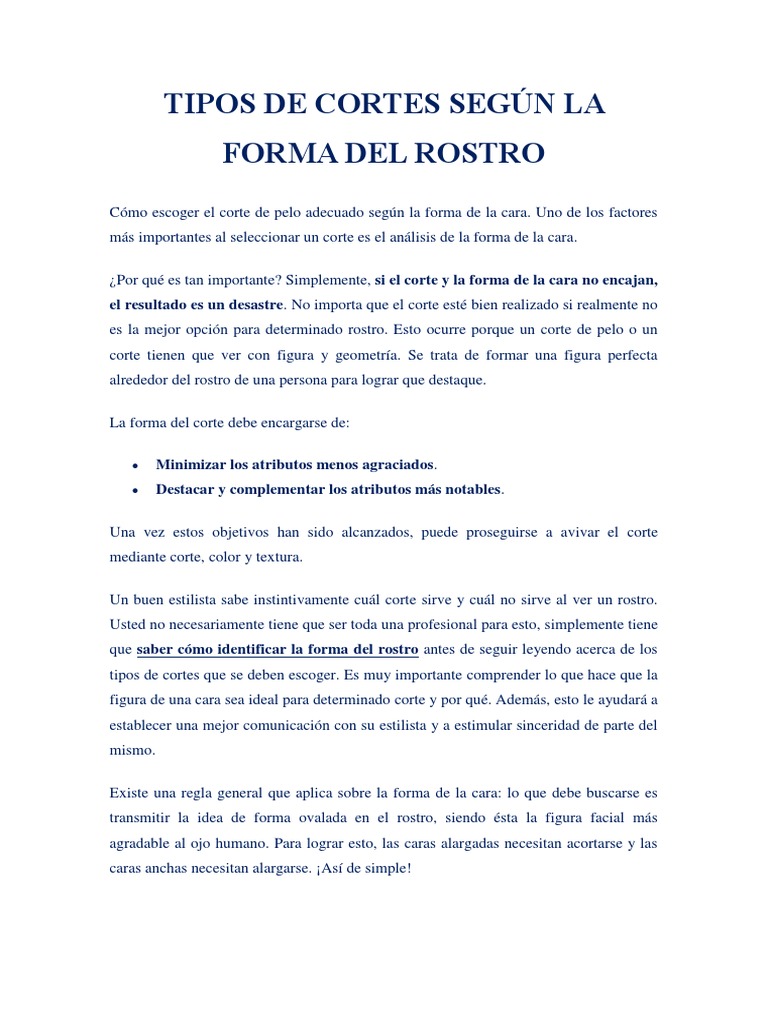 figura de una cara sea ideal para determinado corte y por qu. Adems, esto le ayudar a