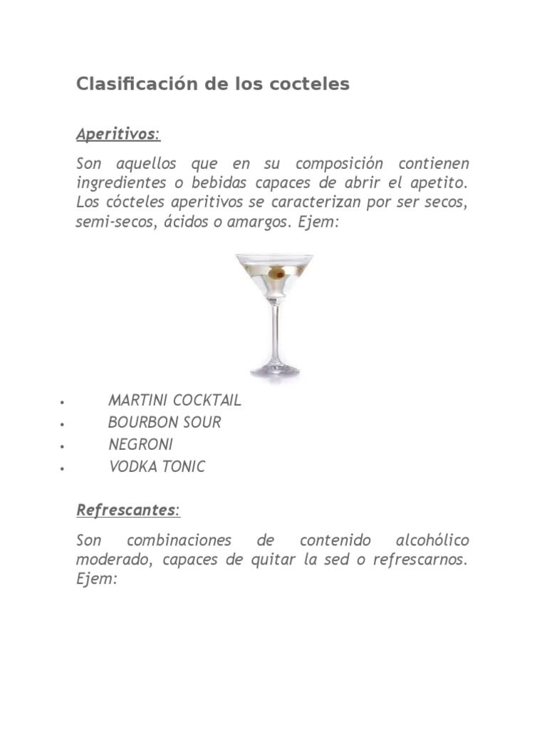 temperatura del coctel. A continuacin veremos la clasificacin de cocteles segn