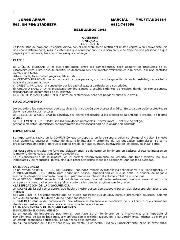 Tipos y Clases de Crédito y Insolvencia
