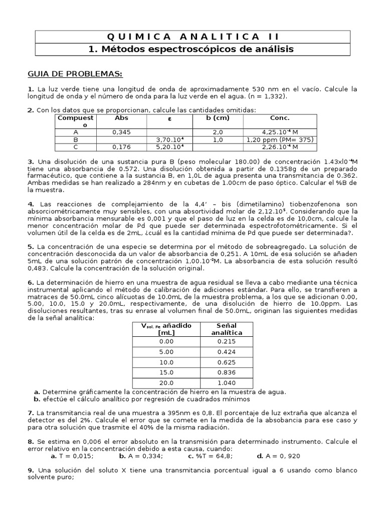 6. La determinacin de hierro en una muestra de agua residual se lleva a cabo mediante una tcnica