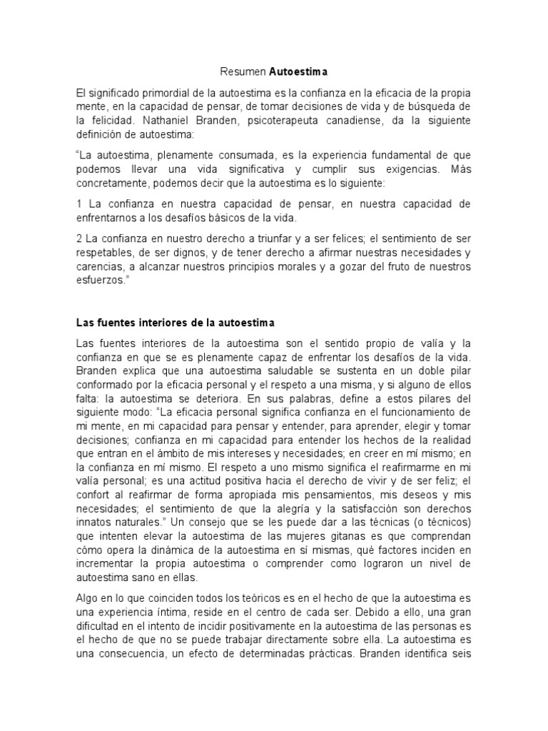 Resumen Autoestima