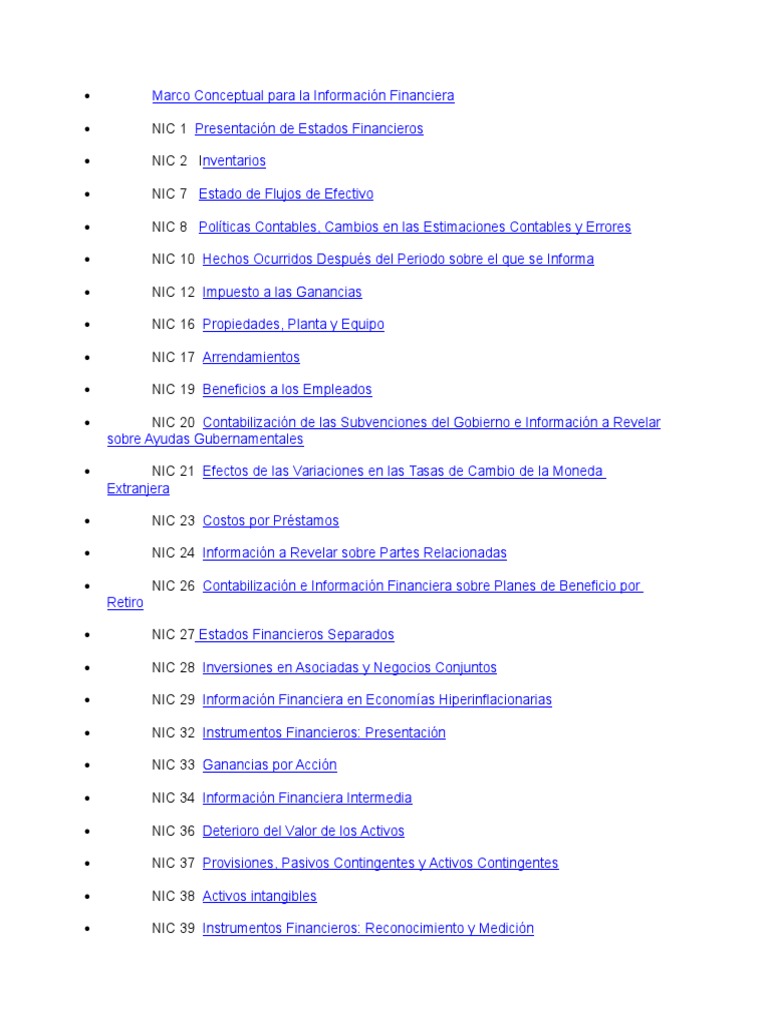 Normas Internacionales de Contabilidad NICs, especficamente en el