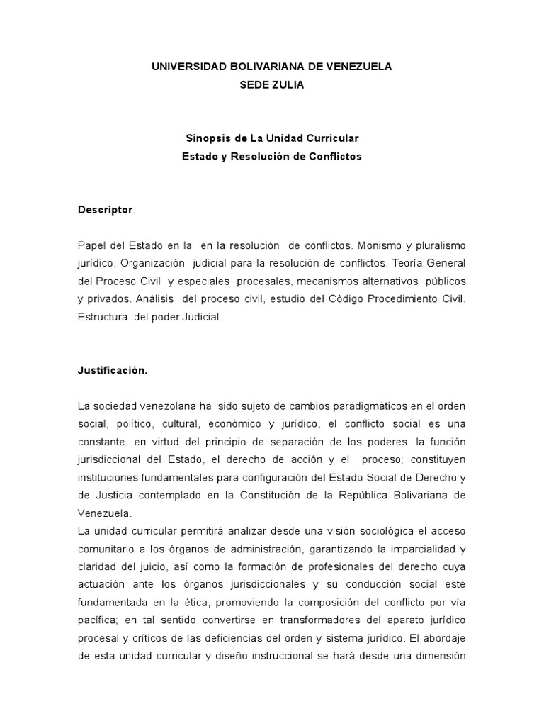 En la unidad curricular se incluye el papel del Estado en la resolucin de los