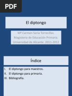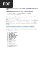 El diptongo se define como la unin de dos vocales en la misma slaba.