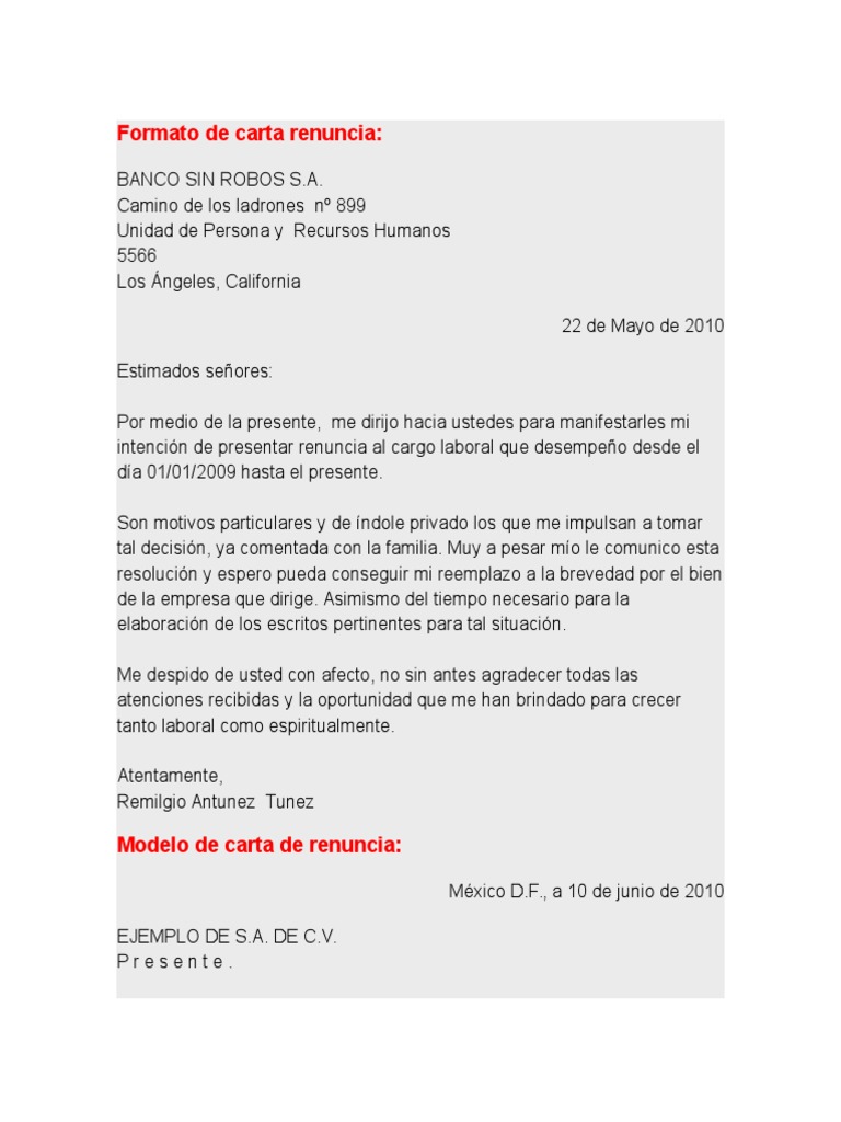 intencin de presentar renuncia al cargo laboral que desempeo desde el