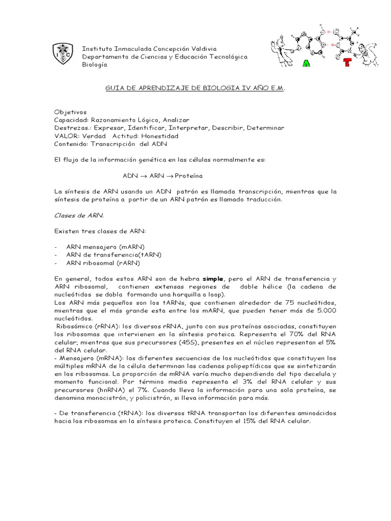 GUIA DE APRENDIZAJE DE BIOLOGIA IV AO E.M.