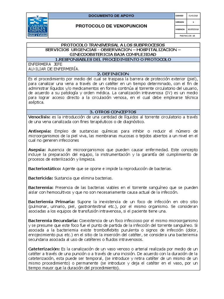 Aplicacin de normas de bioseguridad. Todas las punciones venosas deben realizarse