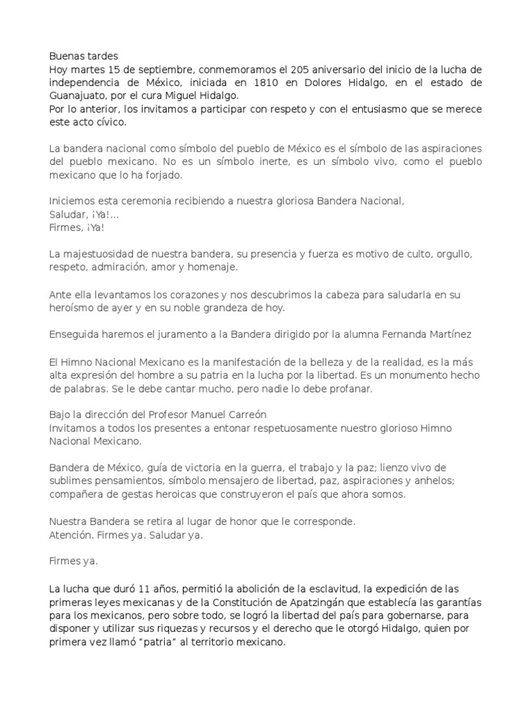 Enseguida haremos el juramento a la Bandera dirigido por la alumna Fernanda Martnez