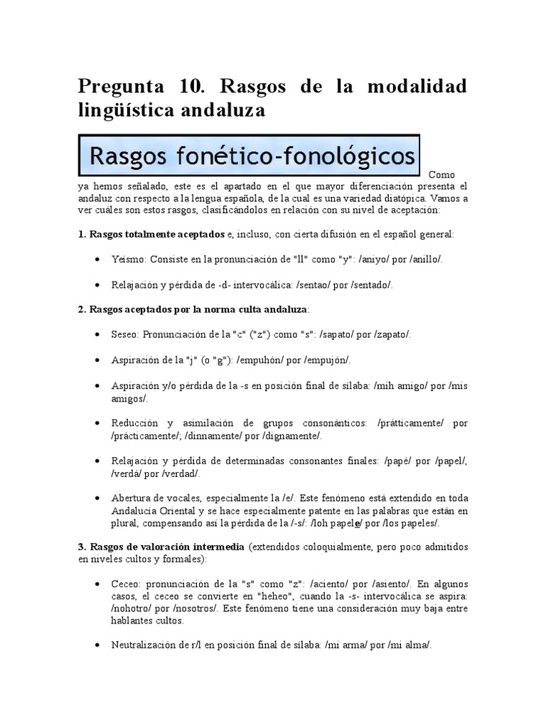 andaluz con respecto a la lengua espaola, de la cual es una variedad diatpica. Vamos a