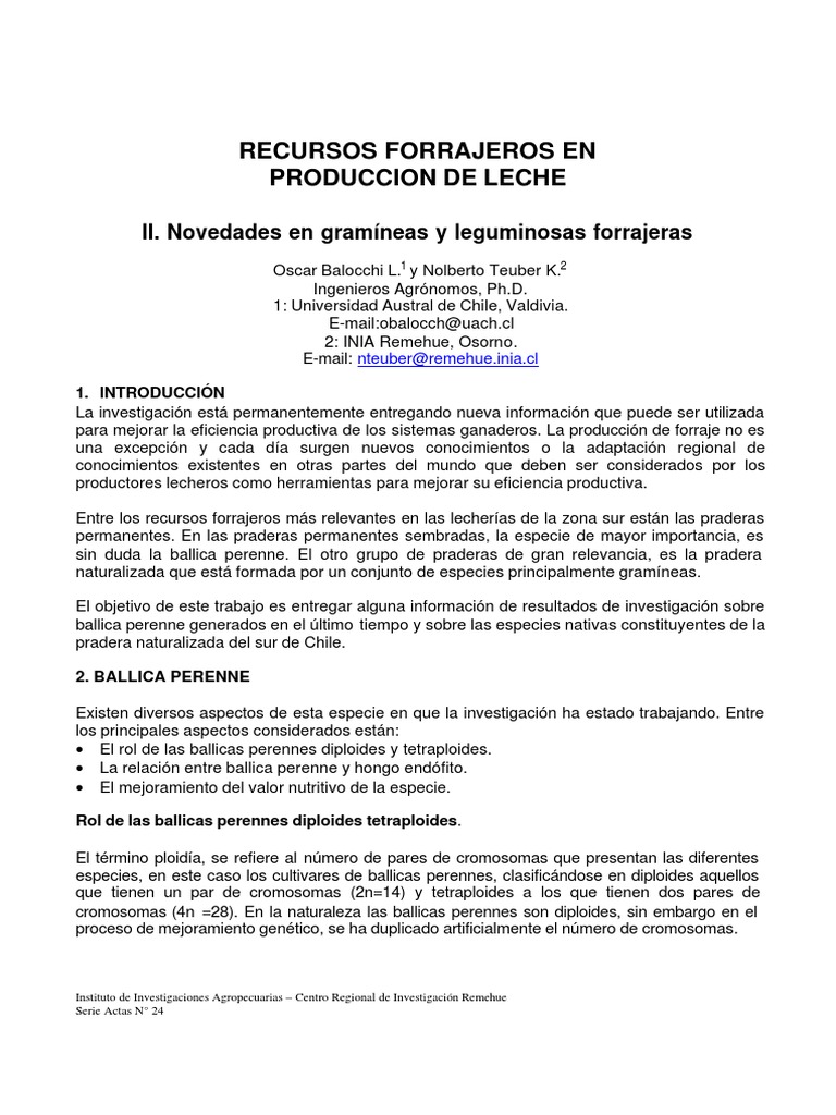 ballica perenne generados en el ltimo tiempo y sobre las especies nativas constituyentes de la