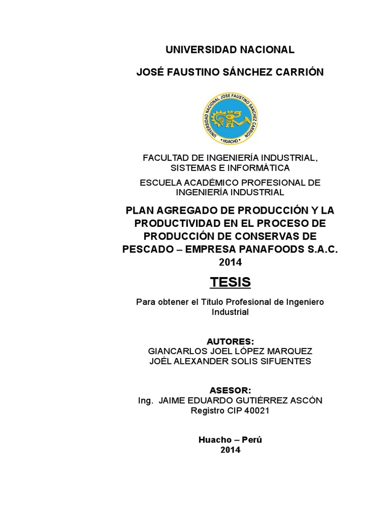 Escuela Acadmica Profesional de Ingeniera Industrial, presentamos nuestra Tesis