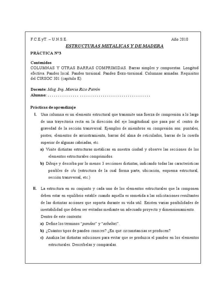 I. Una columna es un elemento estructural que transmite una fuerza de compresin a lo largo
