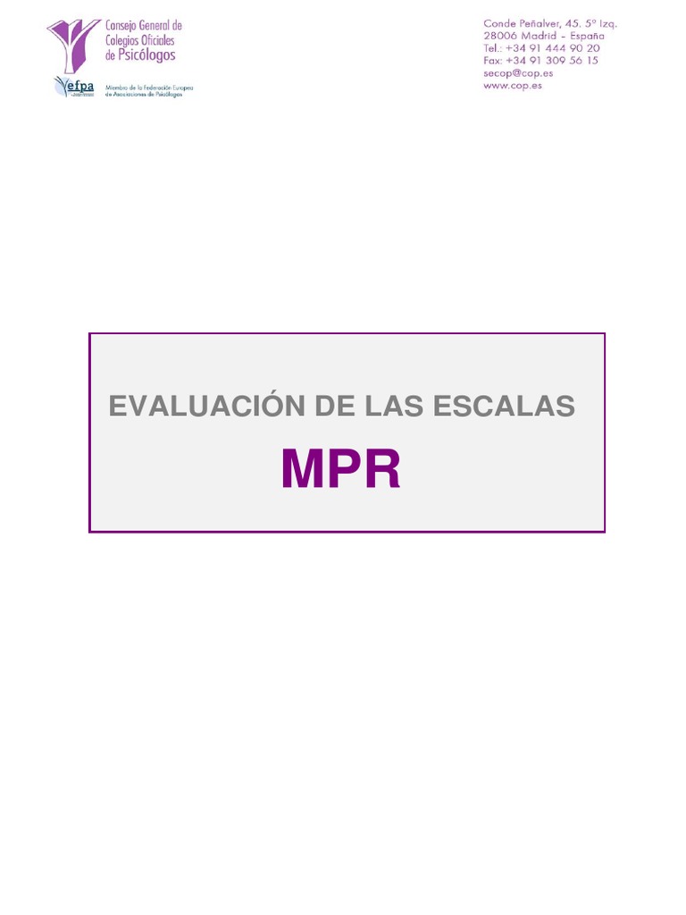 precisin (Alfonso y Flanagan, 2008). Considerando lo anterior, la Escala MP-R parece
