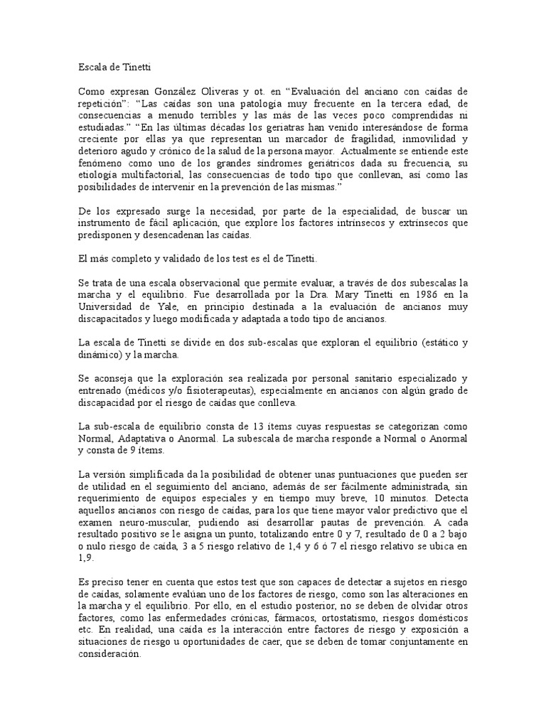 marcha y el equilibrio. Fue desarrollada por la Dra. Mary Tinetti en 1986 en la