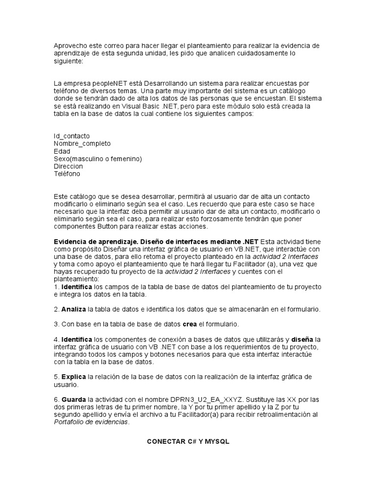 Evidencia de aprendizaje. Diseo de interfaces mediante .NET Esta actividad tiene