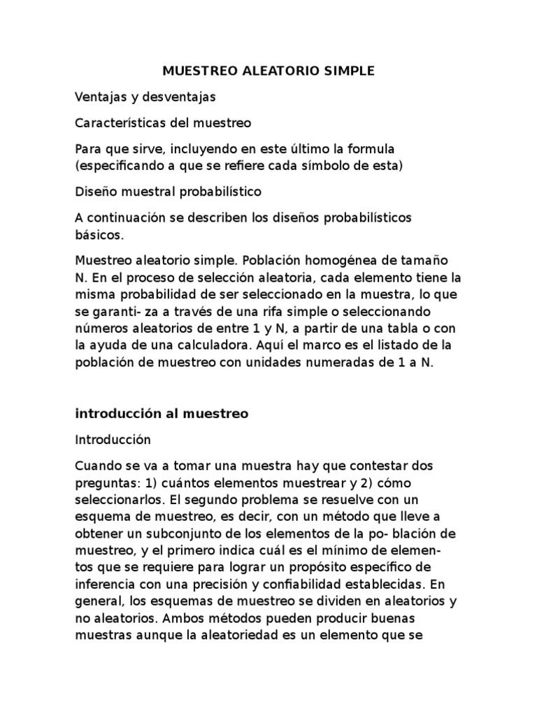 caso particular del muestreo aleatorio simple donde la