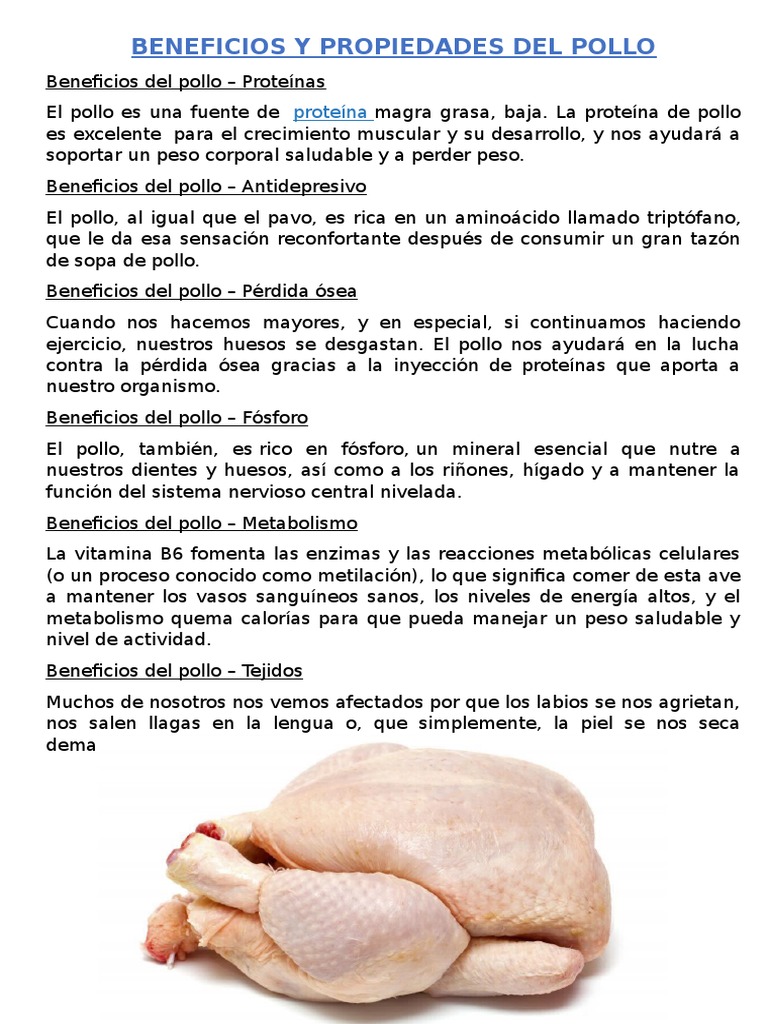 BENEFICIOS Y PROPIEDADES DEL POLLO