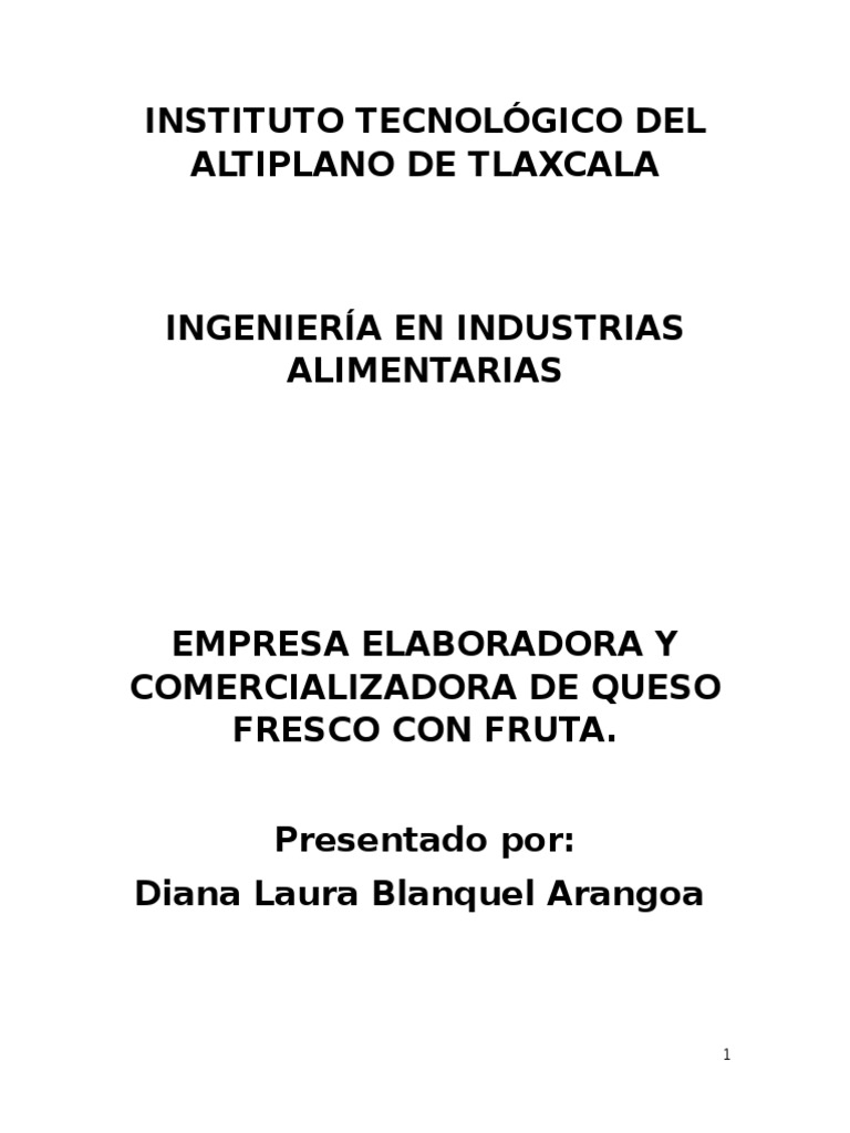 la creacin de una empresa de queso fresco en la regin de Sata Rita