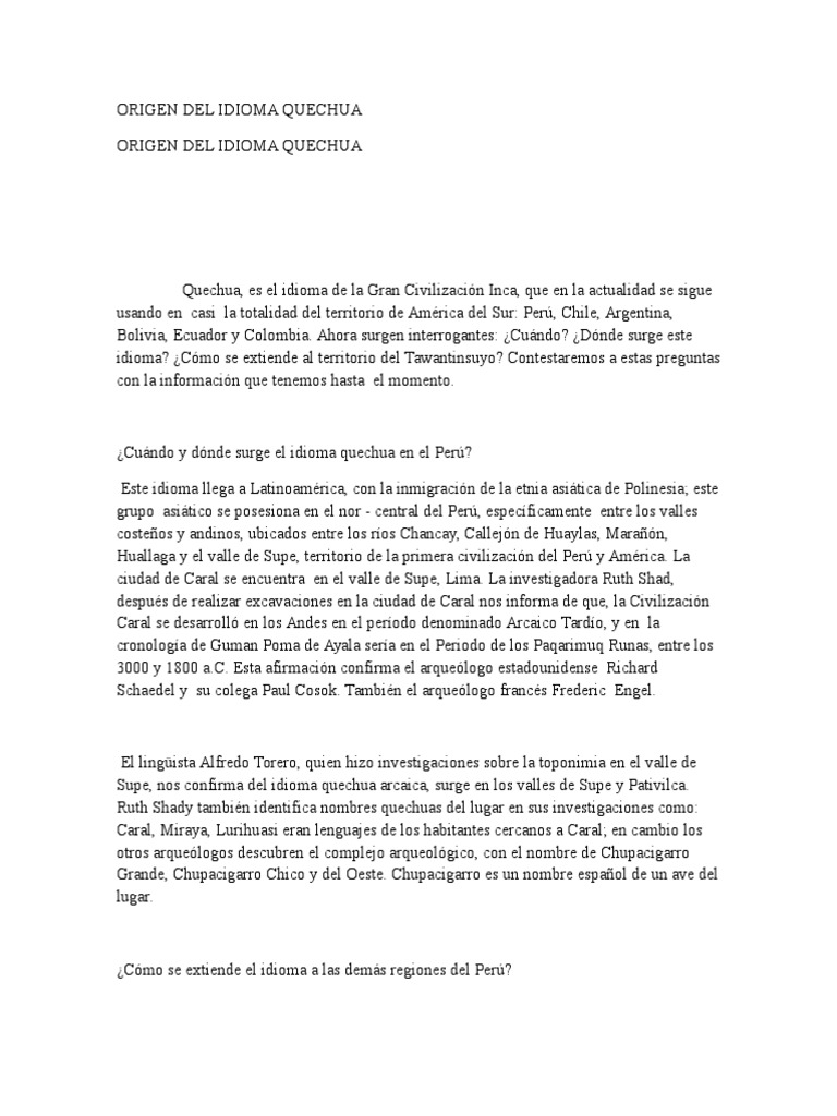 ORIGEN DEL IDIOMA QUECHUA