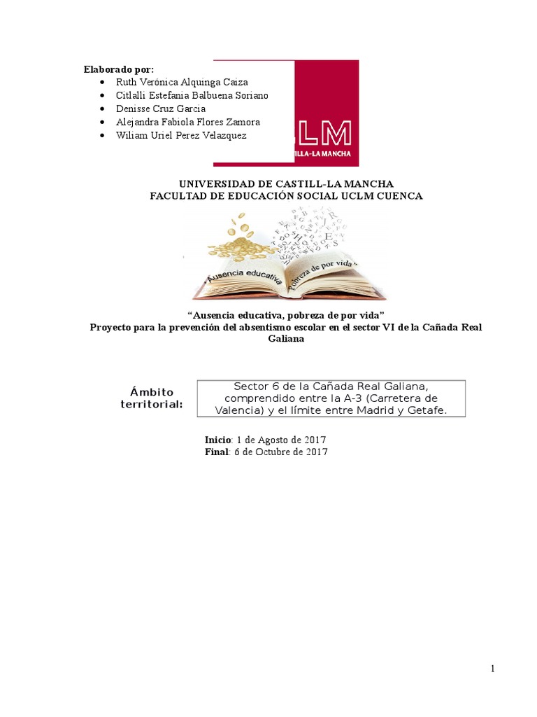 Proyecto para la prevencin del absentismo escolar en el sector VI de la Caada Real