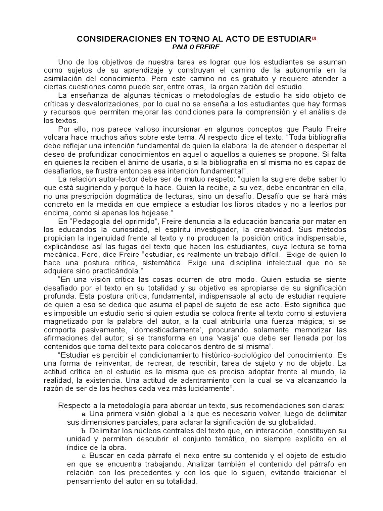 Finalmente, dice Freire: El estudio no se mide por el nmero de pginas ledas en