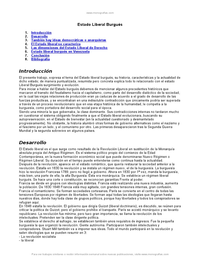El presente trabajo, expresa el tema del Estado liberal burgus, su historia, caractersticas y la actualidad de