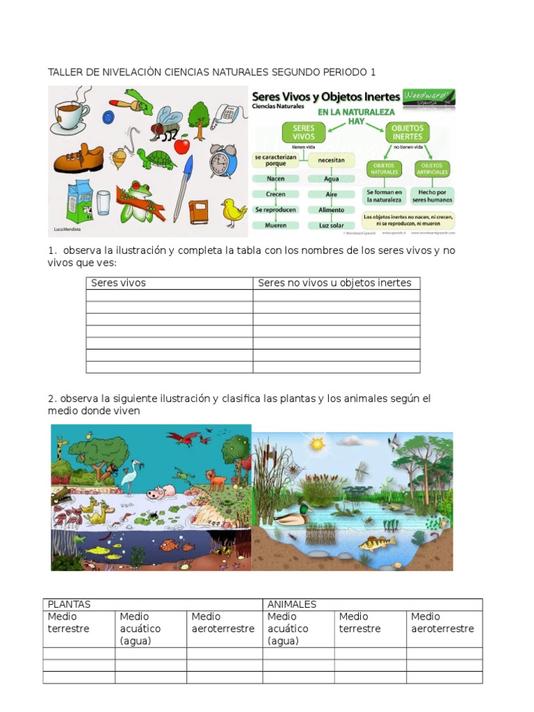 1. observa la ilustracin y completa la tabla con los nombres de los seres vivos y no