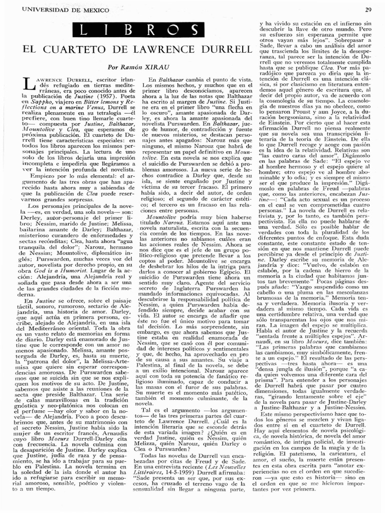 quen los motivos de su acto. De Justine, ligioso iluminado, capaz de conducir a de Durrell habr que pasar por cuatro
